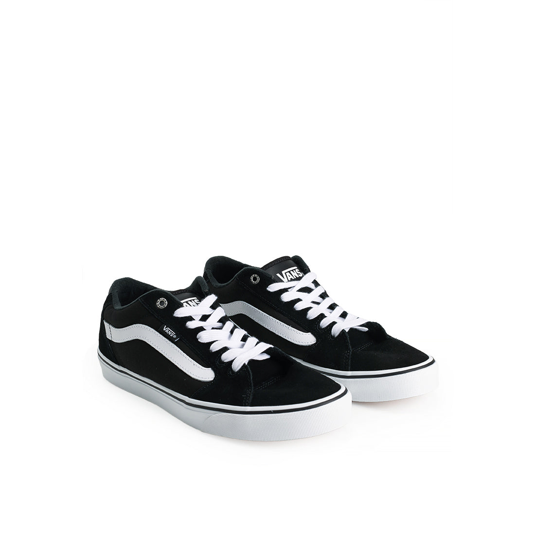 The Vans Faulkner is a classic, low-top shoe that stands out for its lightweight construction and non-slip sole. The black and white design creates a timeless and versatile look that goes with many different outfits. With its low-cut silhouette, the shoe offers plenty of freedom of movement and a comfortable fit. The Vans brand is known for high-quality skate shoes that are both functional and fashionable.