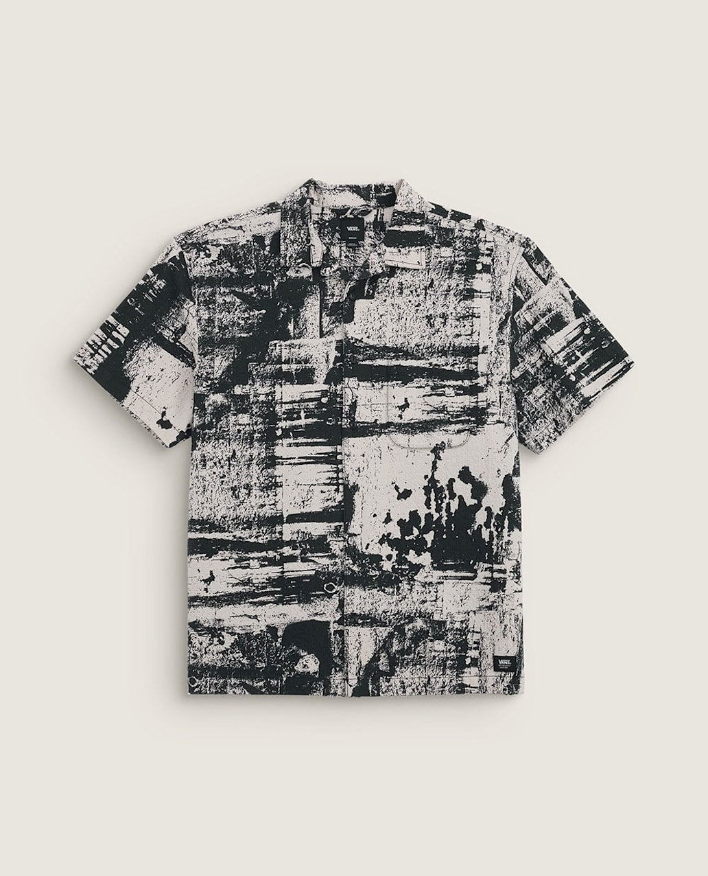 Get A Little Artsy With It In Our Fallon Shirt, A Short-Sleeved, Straight Hem Shirt Featuring An Allover Industrial Brushtroke Print. The Design Features A Camp Collar, A Left Chest Patch Pocket And A Button-Down Front.
