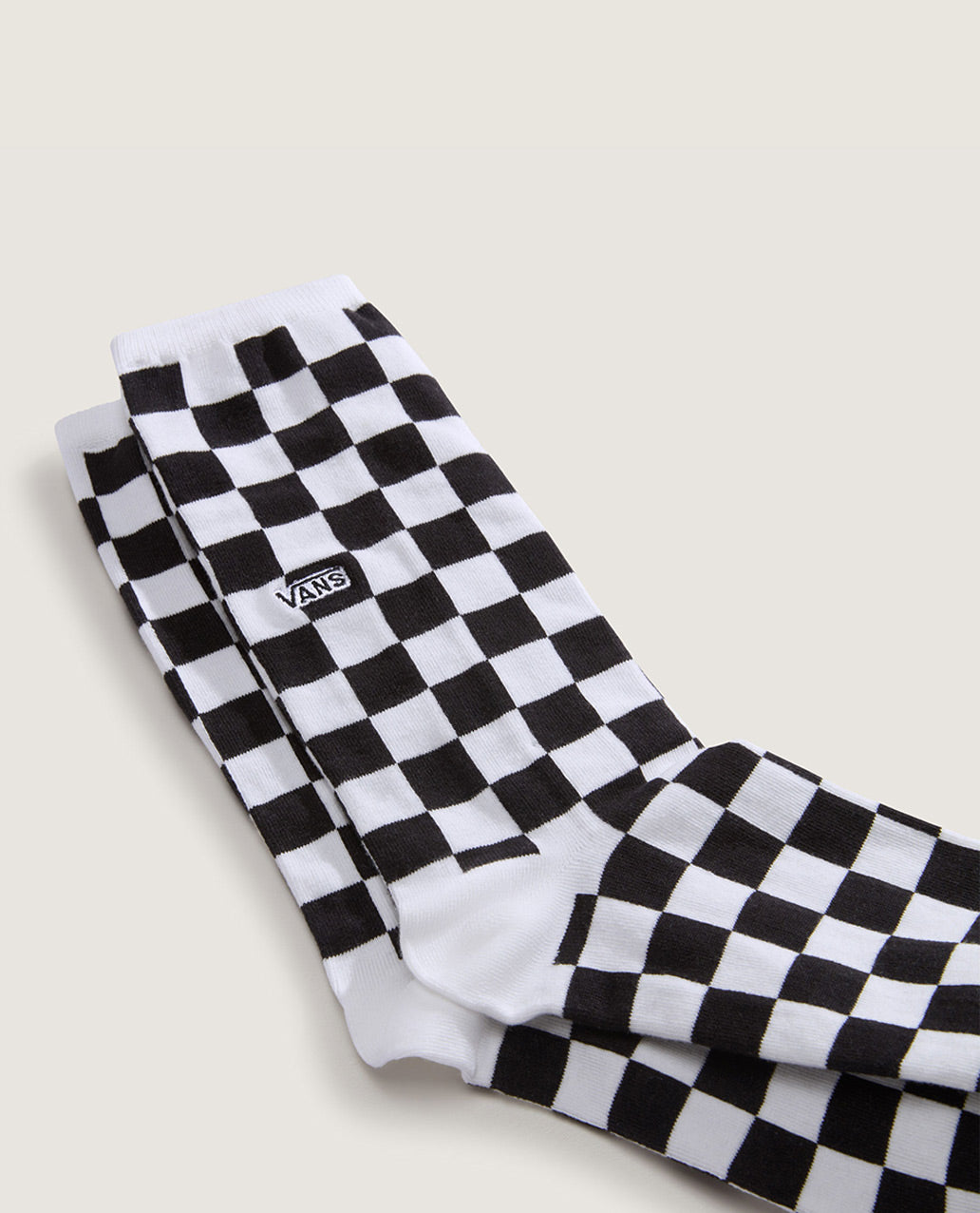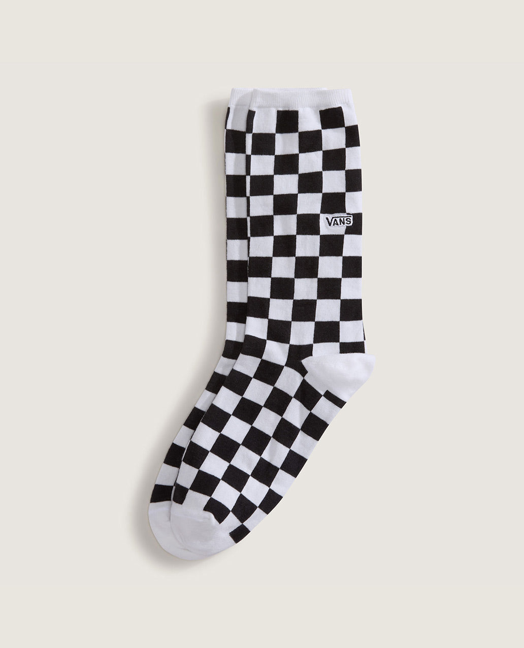 The Ticker Sock is a tall, flat knit crew sock featuring jacquard checker pattern art and embroidered Vans® logo.