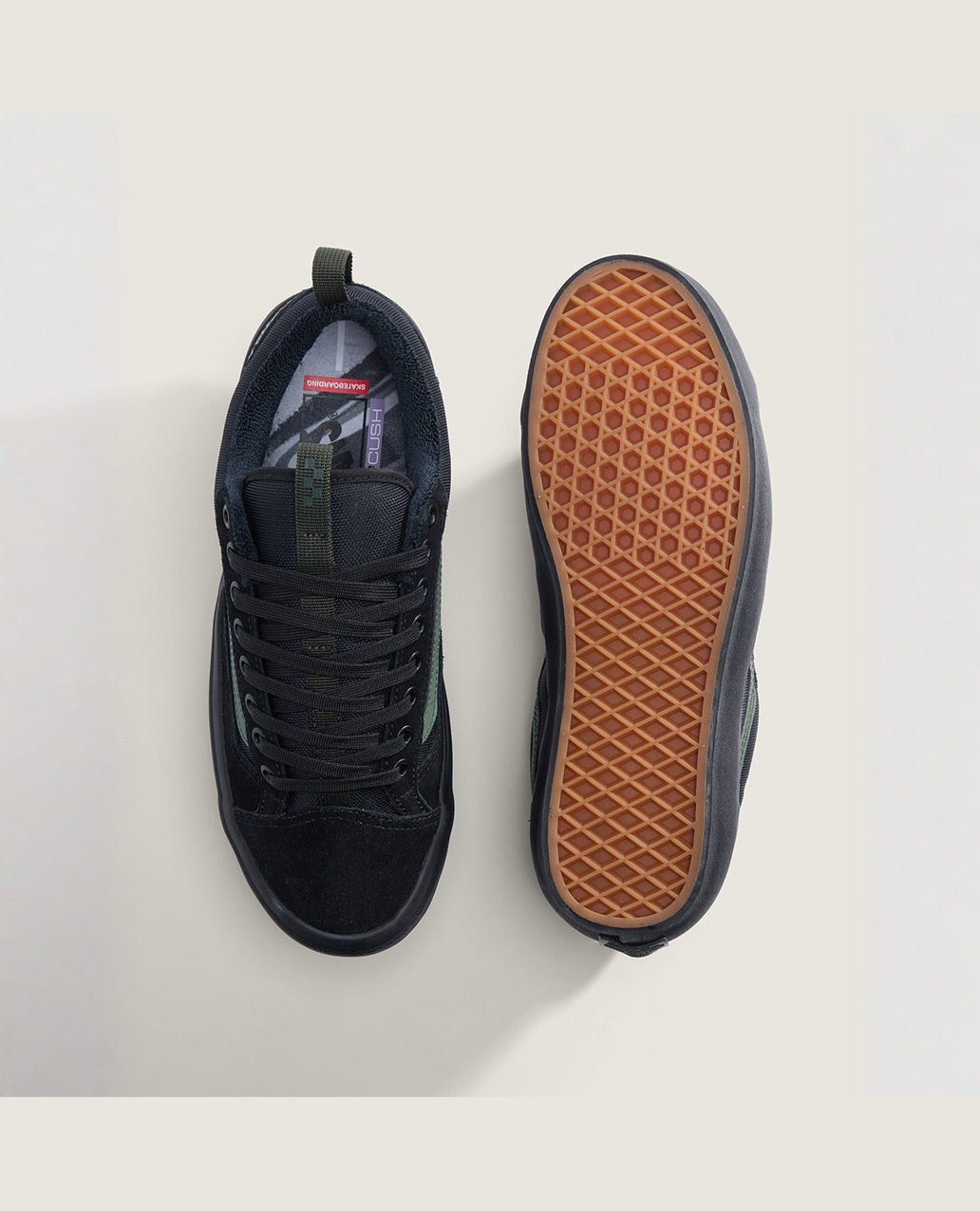 Atiba’s Skate Old Skool™ 36+ stands out with one of his most iconic photos of skate legend, John Cardiel, printed on the insole, and custom hand-drawn logos by his friend and graffiti artist, Haze. The Old Skool 36+ features a refined fit with a padded tongue for added comfort, Duracap™ technology for longevity, and Sickstick™ gum rubber for next-level grip. Additionally, a shorter toe cap and pull tabs on the tongue and heel bring it all together, giving this 90s-inspired shoe its signature style.