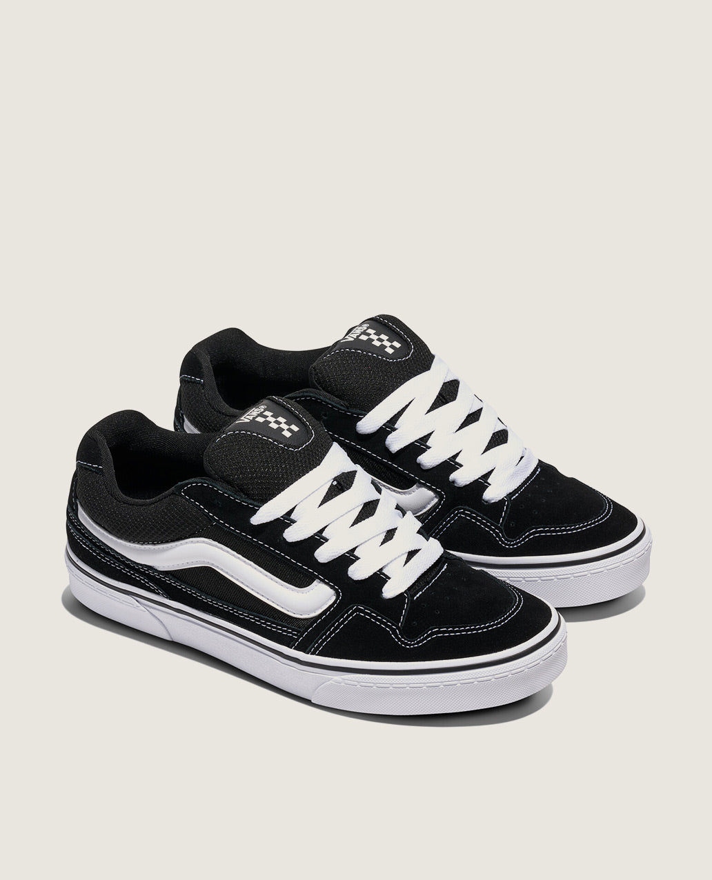 The Vans Caldrone Shoes fuse retro skate energy with modern edge, crafted from suede with textile inserts, contrasted by white laces and a matching Sidestripe, and finished with a signature waffle outsole.